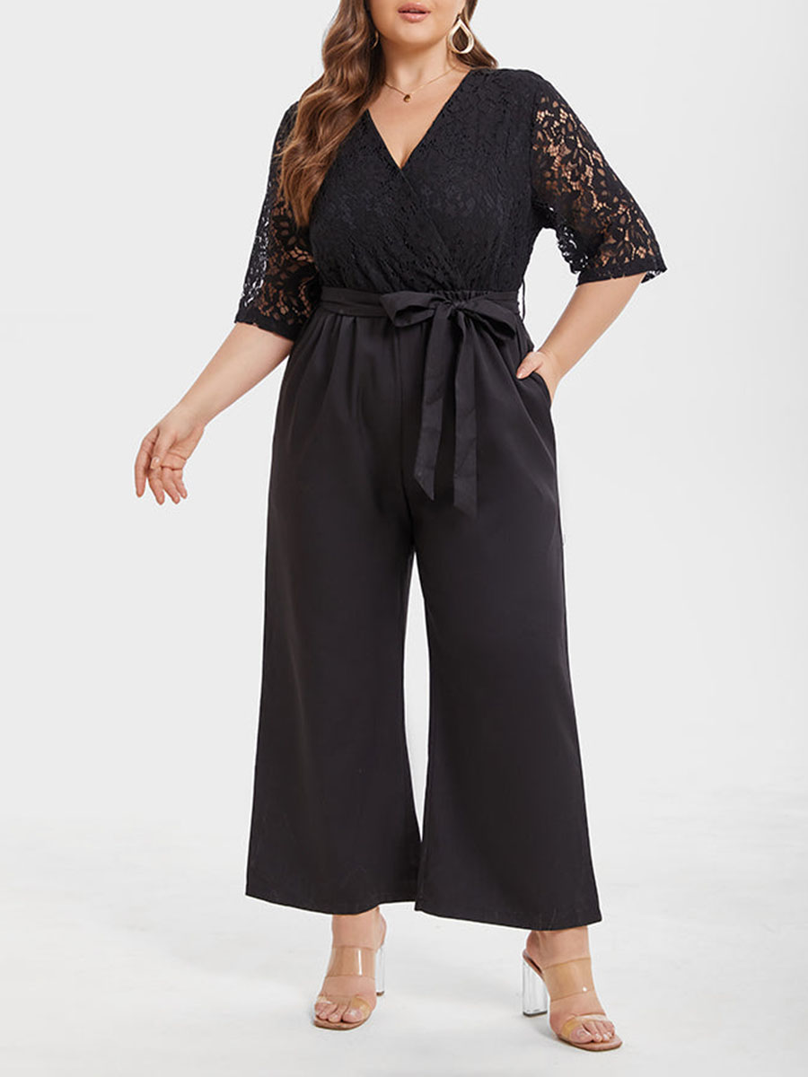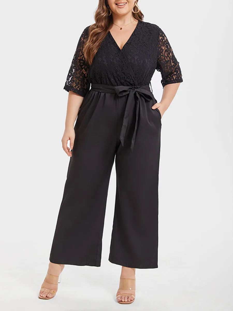 Contrast Lace Pocket Belted Jumpsuit