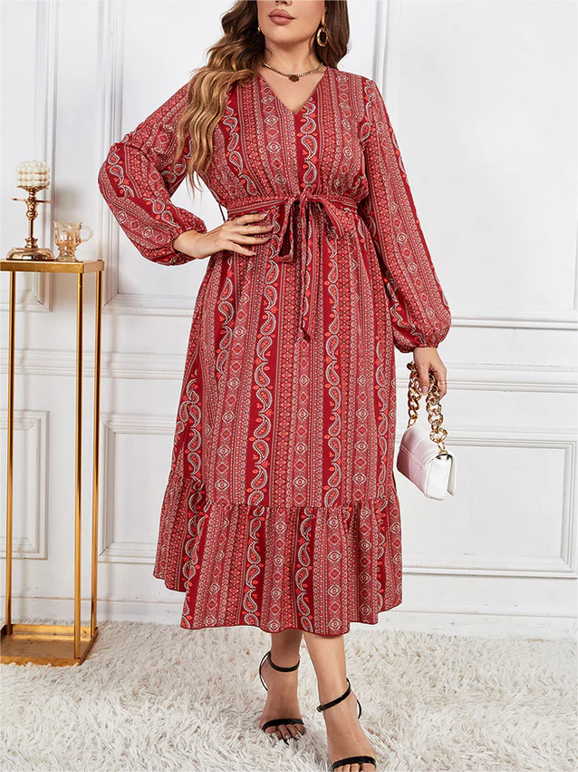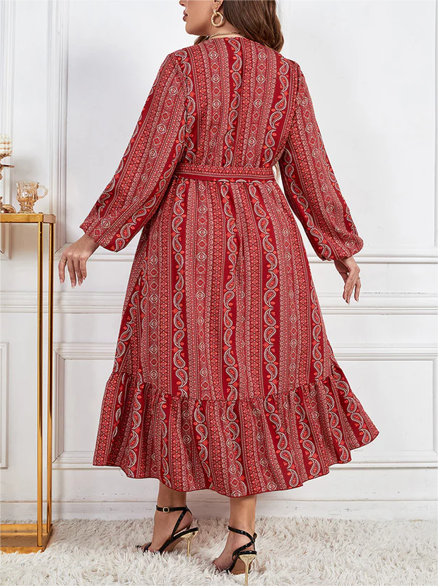Plus Bandana Print V-Neck Lantern Sleeve Ruched Maxi Dress