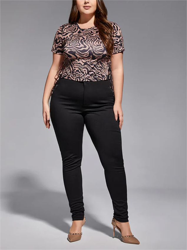 Plus Black Zipper Elastic Waist Skinny Pants 978711