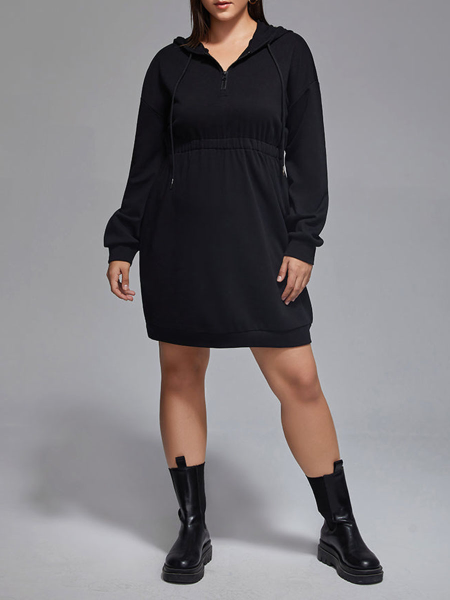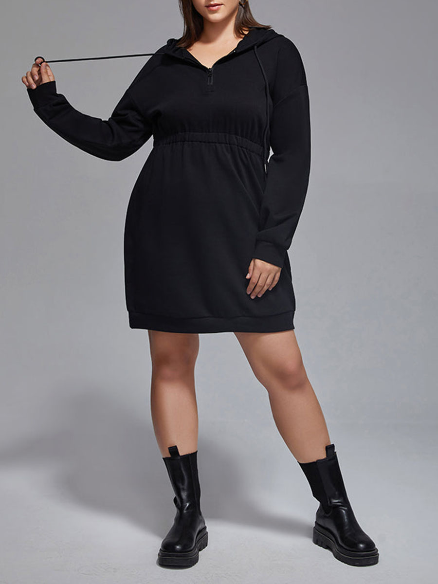 Plus Drawstring Zipper Hoodie Dress