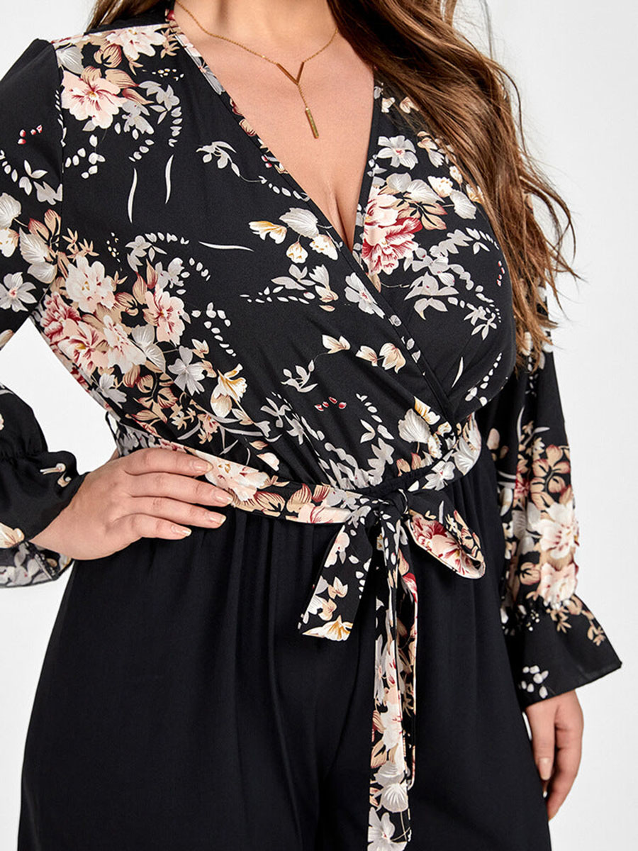 Plus Floral Patchwork Wrap Belted Pocket Jumpsuit 978588