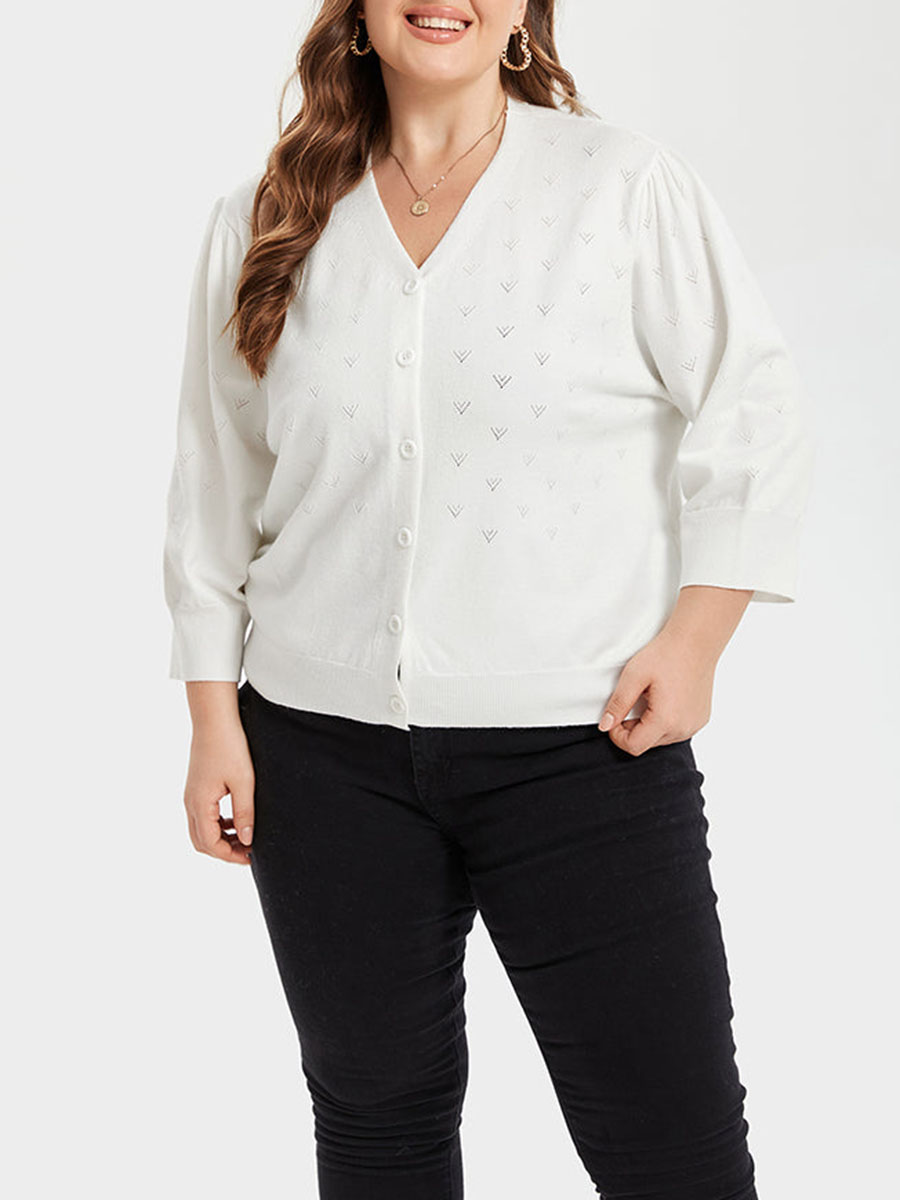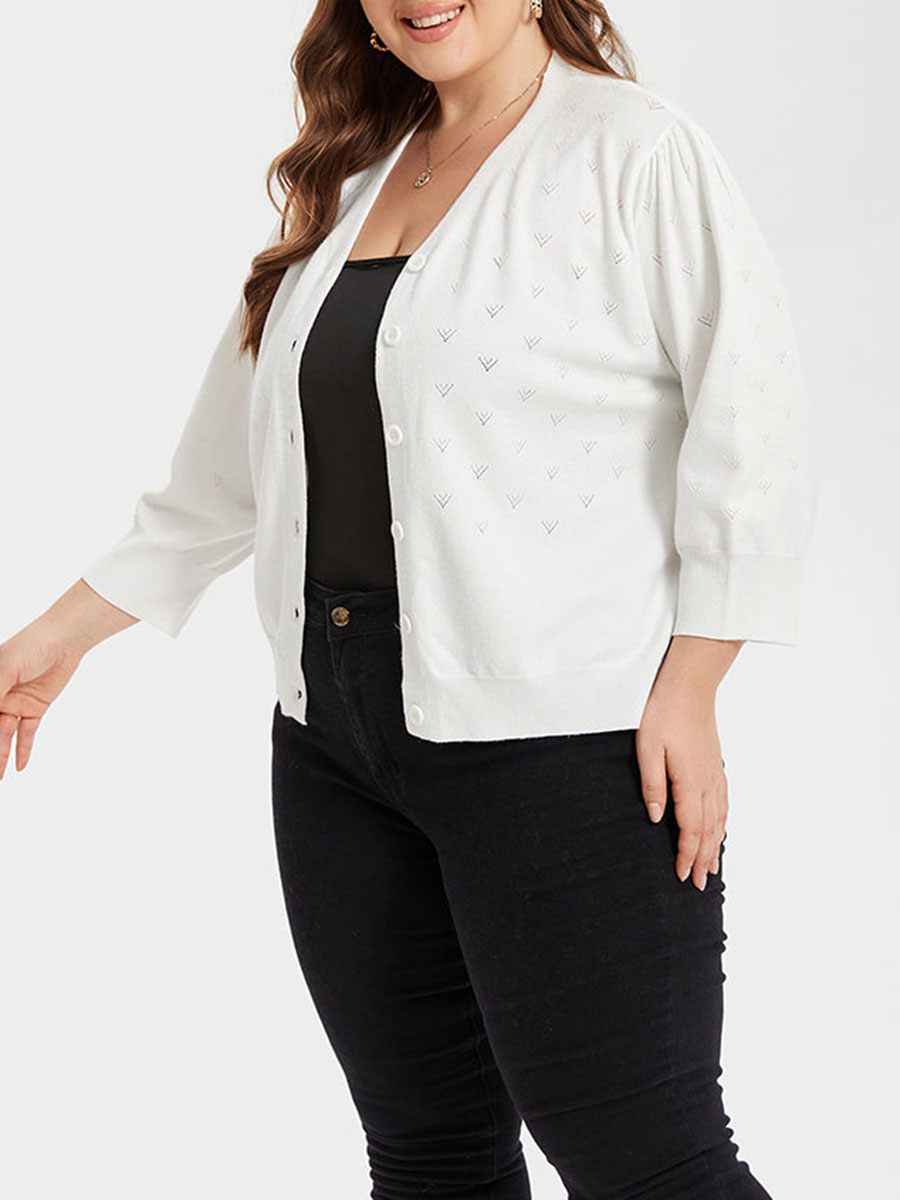 Pointelle Knit Button Front Cardigan