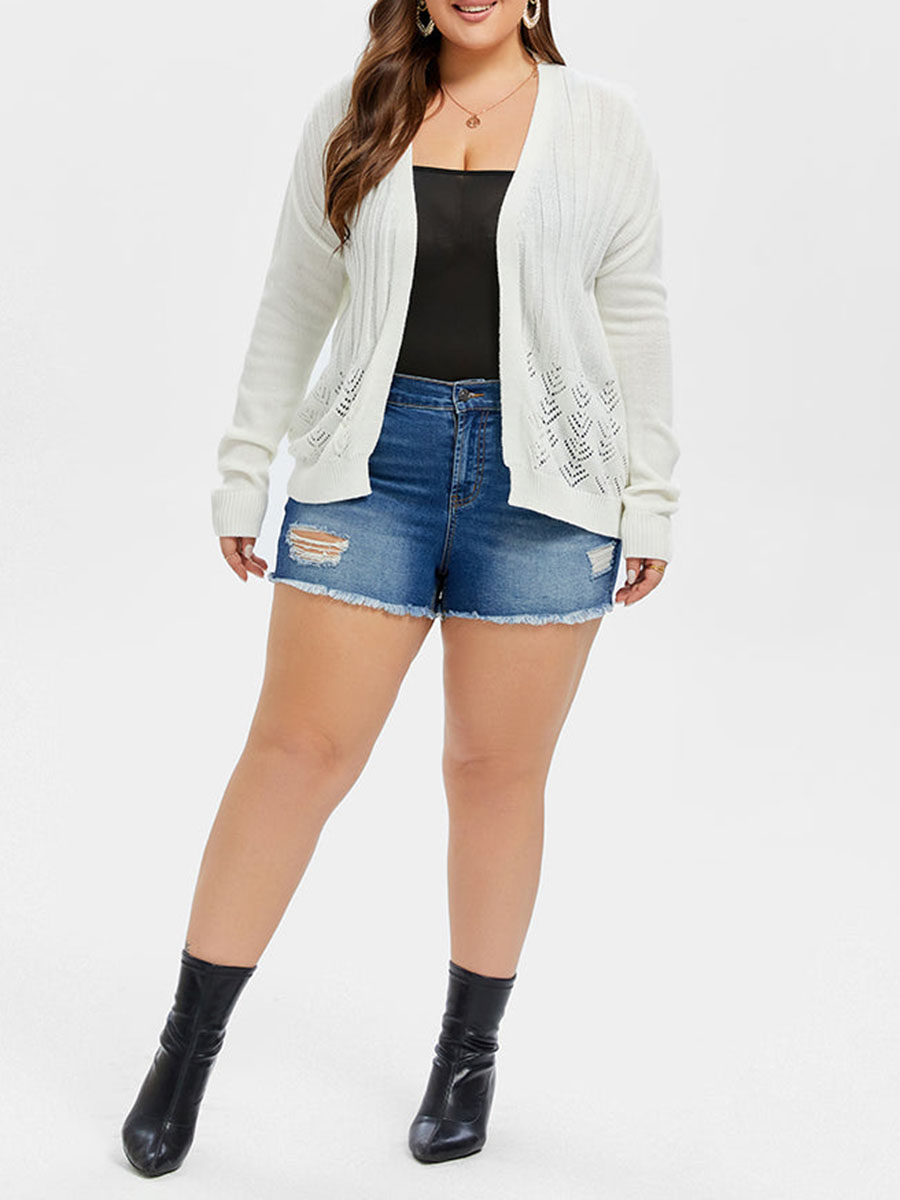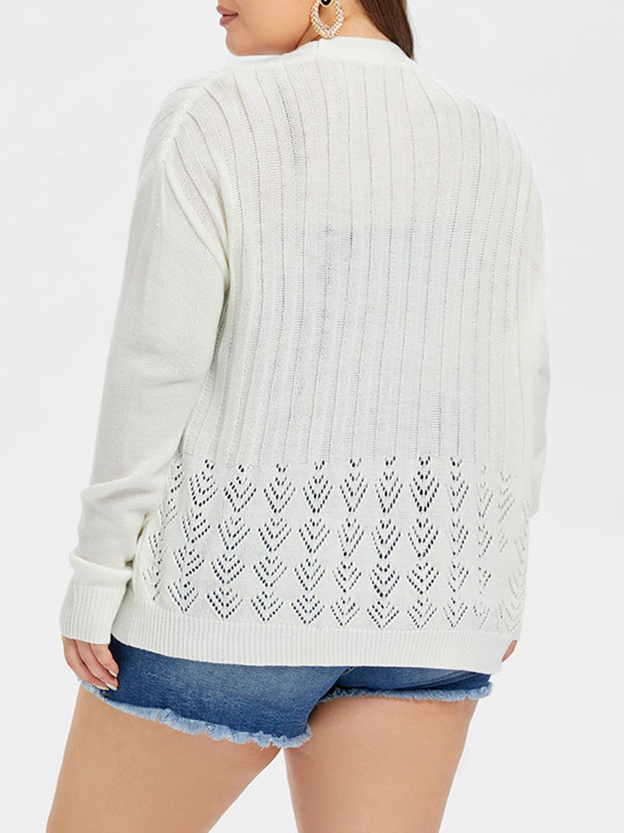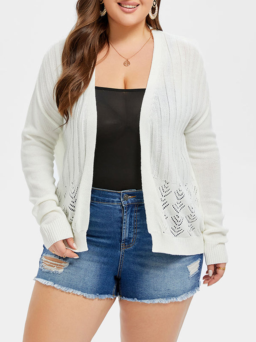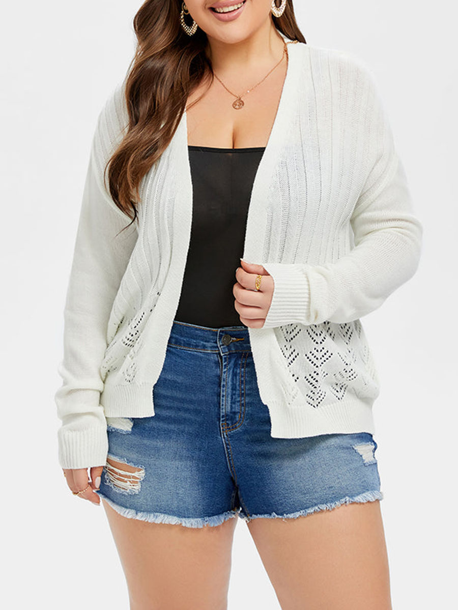 Pointelle Knit Drop Shoulder Open Front Cardigan