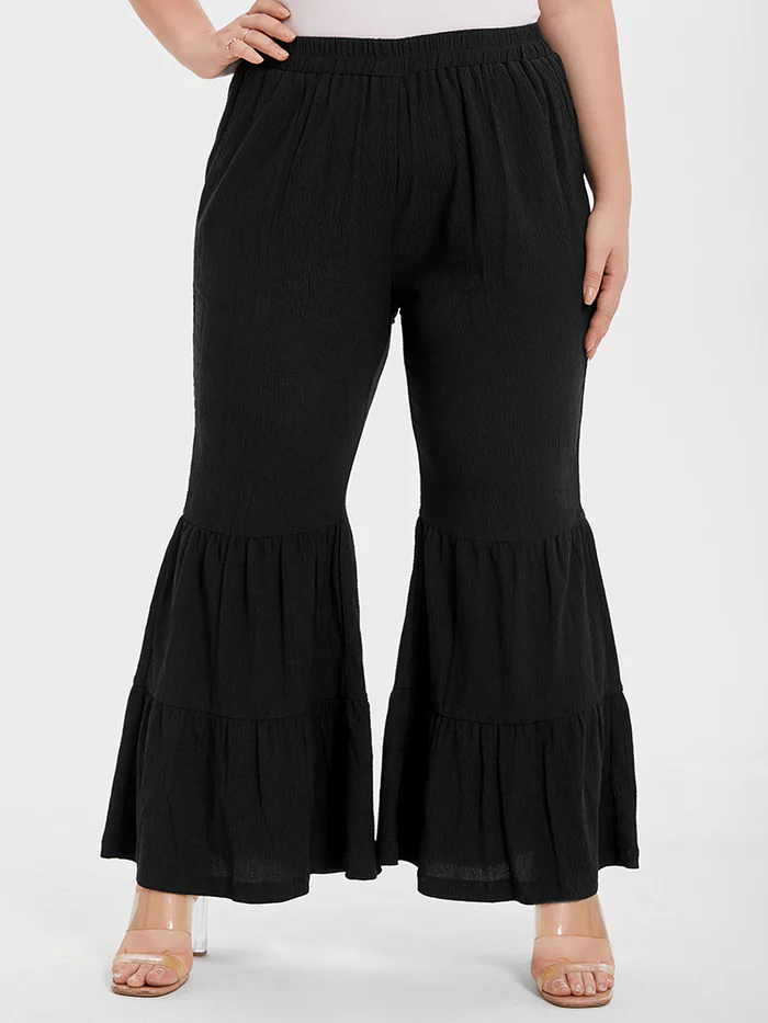 Ruffle Hem Pocket Flare Leg Pants