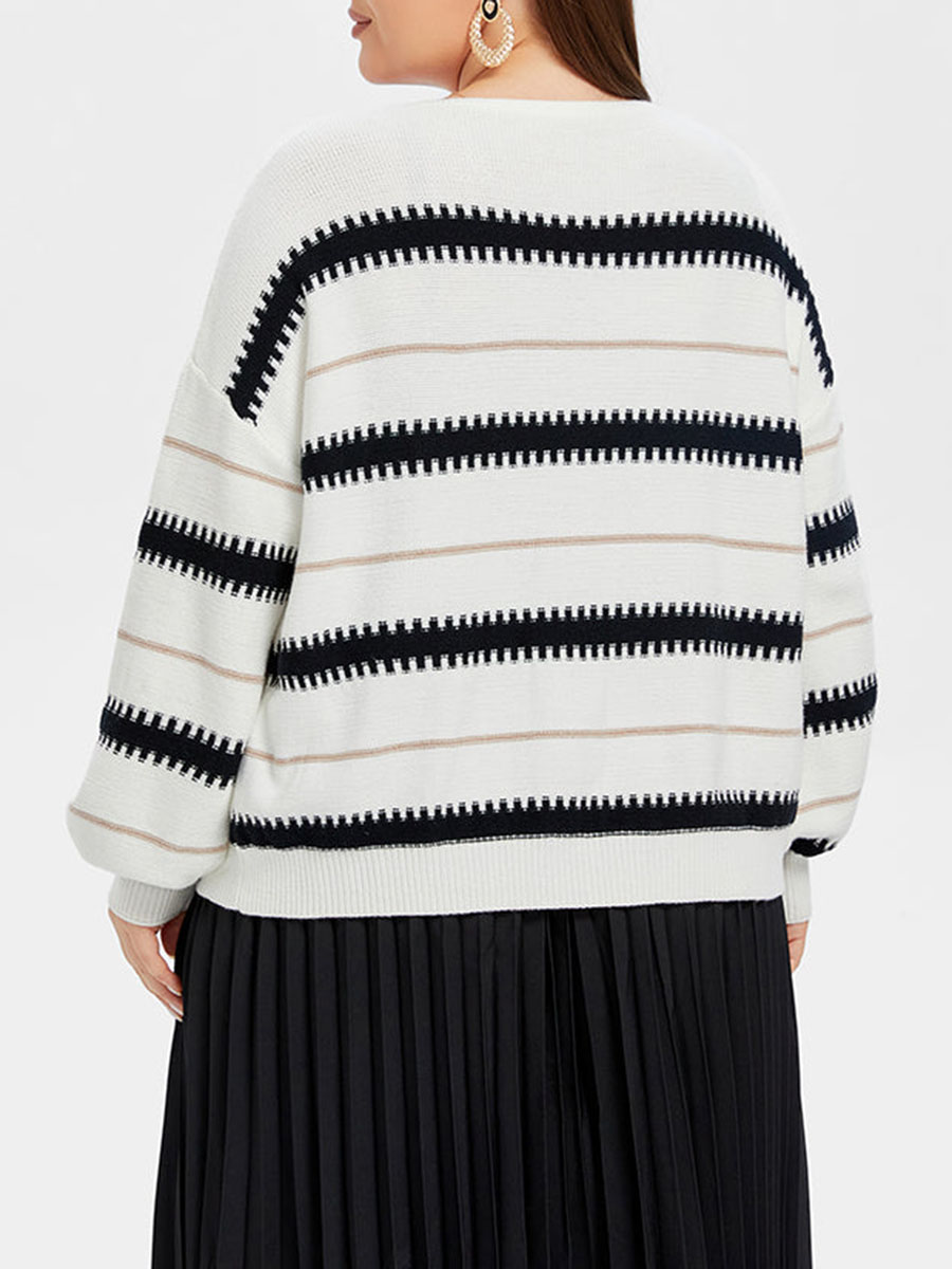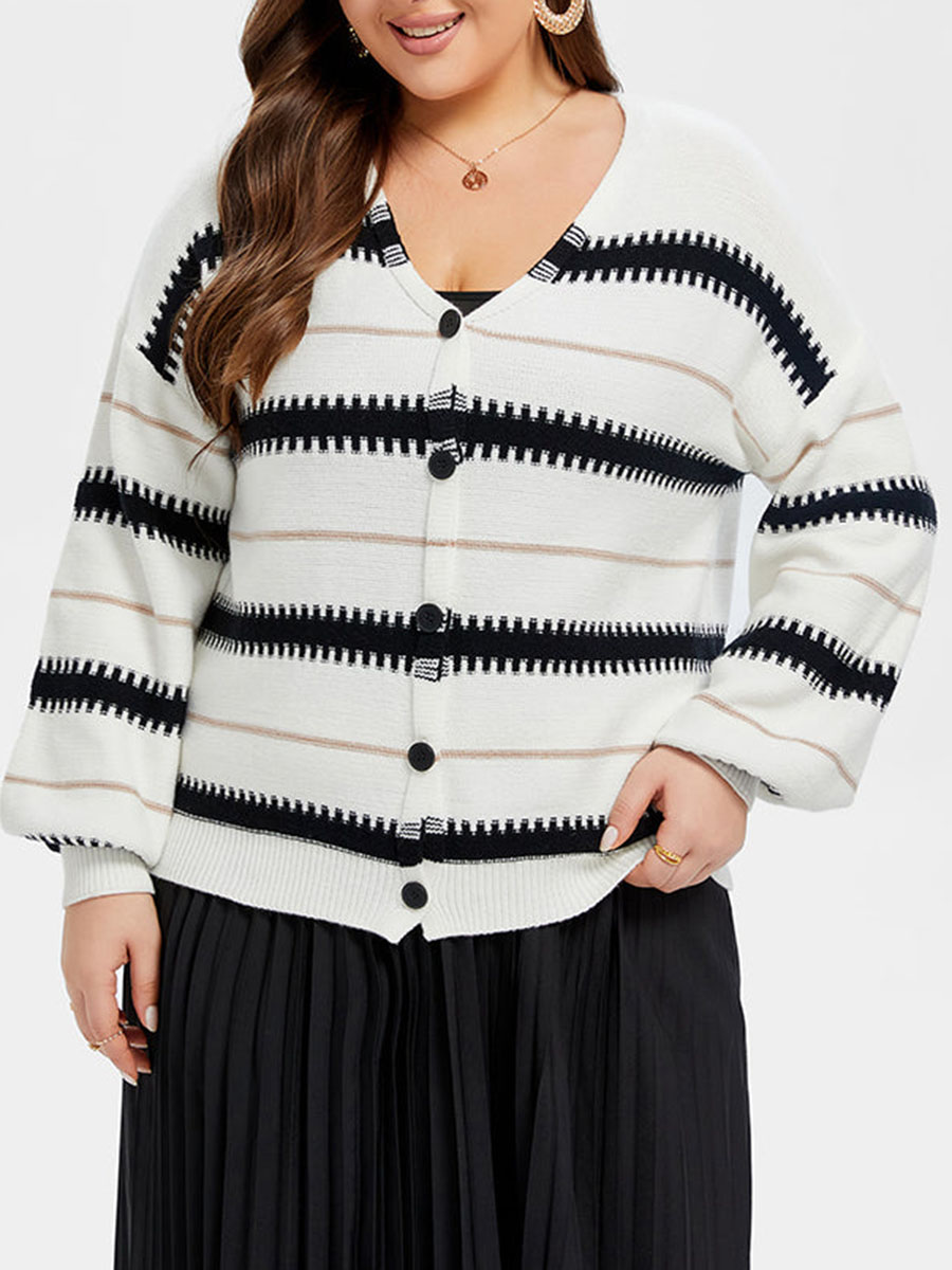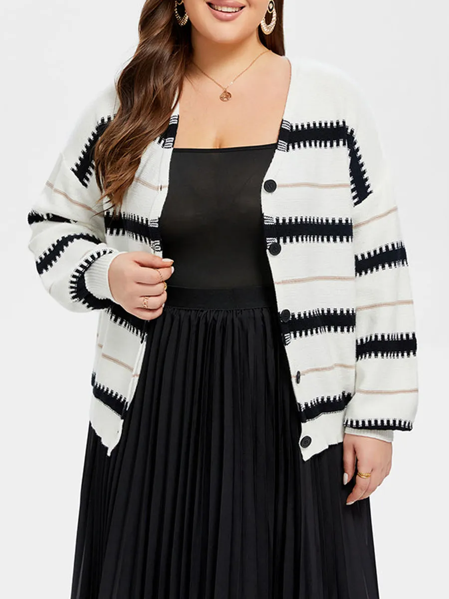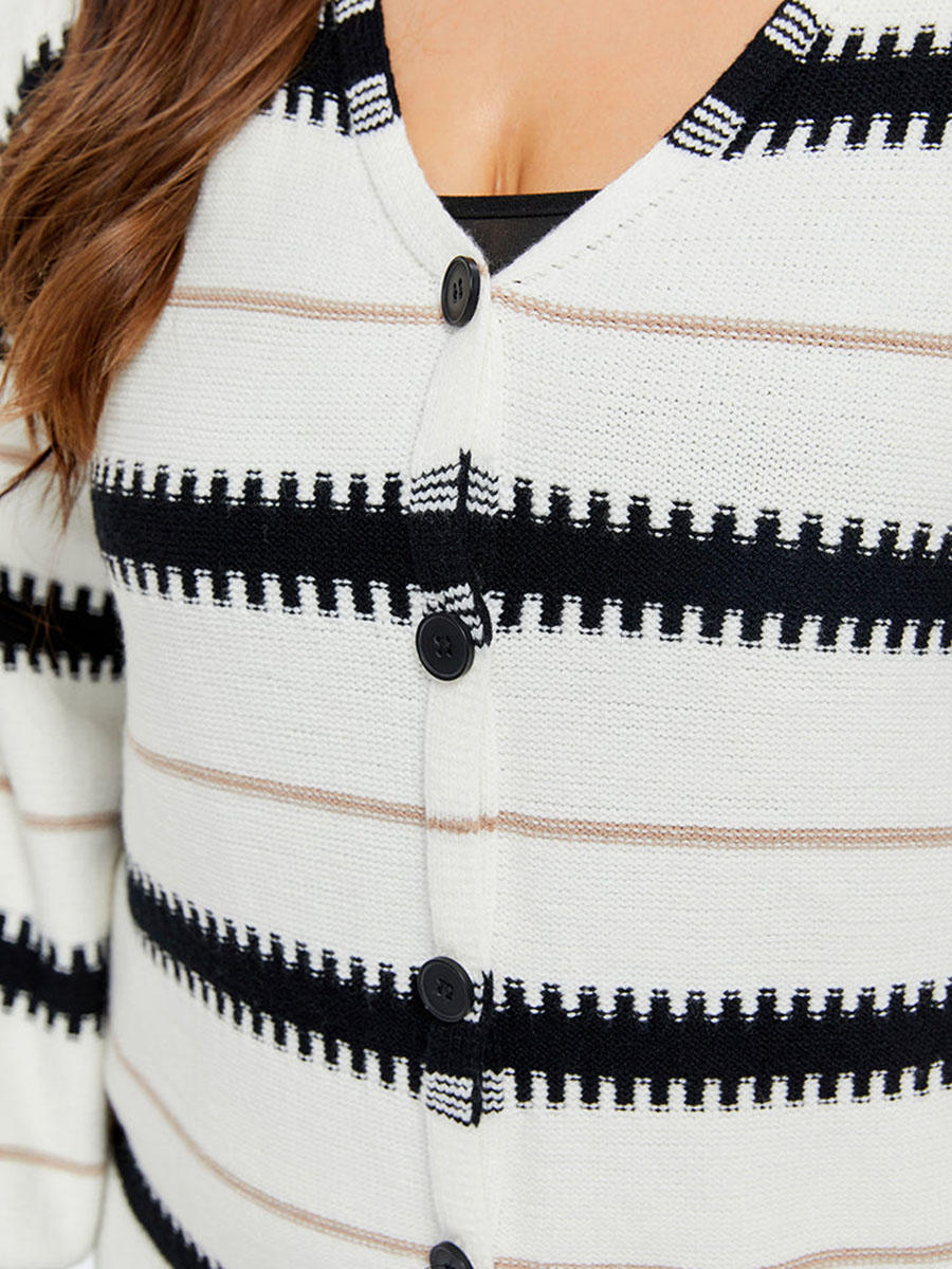 Striped Pattern Button Front Drop Shoulder Cardigan
